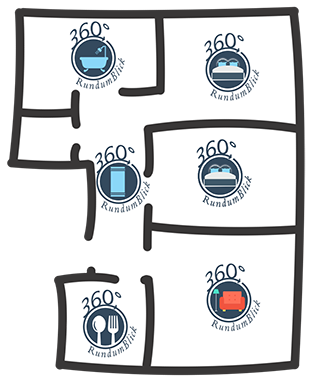 PANORAMA: Bewegen Sie sich mit der Maus bzw. auf mobilen Geräten mit dem Finger und durch Bewegung durch unser 360° Panorama oder nutzen Sie die Icons im Grundriss um in die Räume zu springen. Tip: Nutzen Sie die Vollbildfunktion für den vollen Genuss.